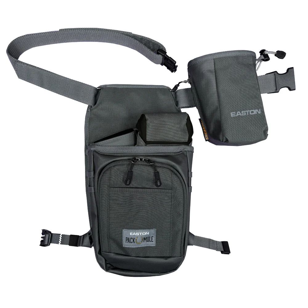 Lightweight, modular hip quiver built for both range and field use. The Easton Pack Mule Quiver features customizable arrow storage, eight organized pockets, and an ambidextrous belt fit up to 48".